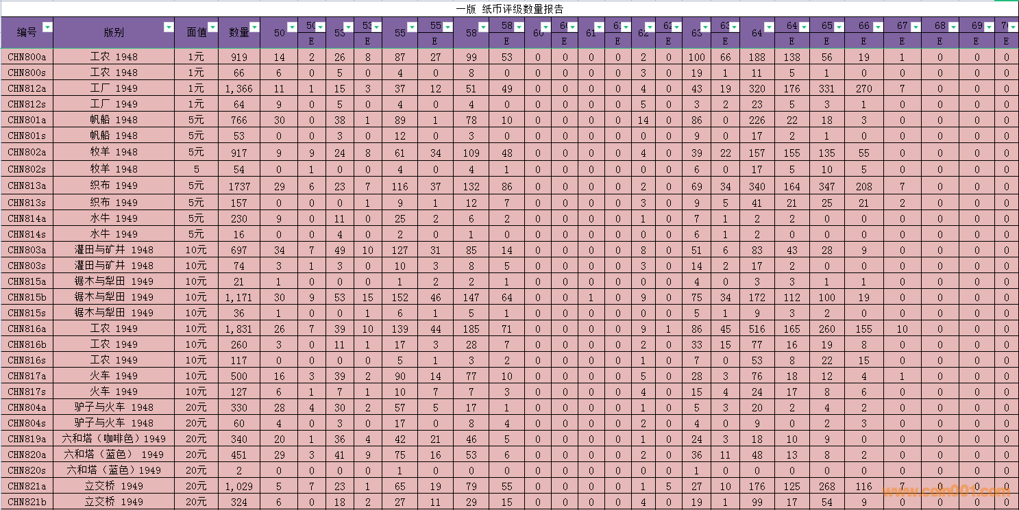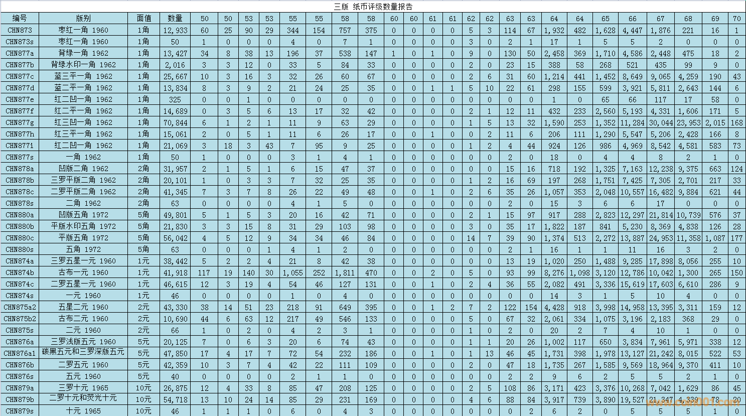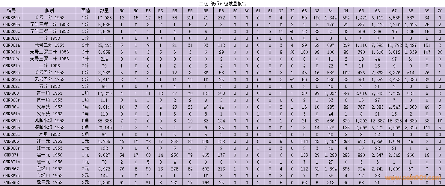 PMG紙幣評(píng)級(jí)數(shù)量報(bào)告