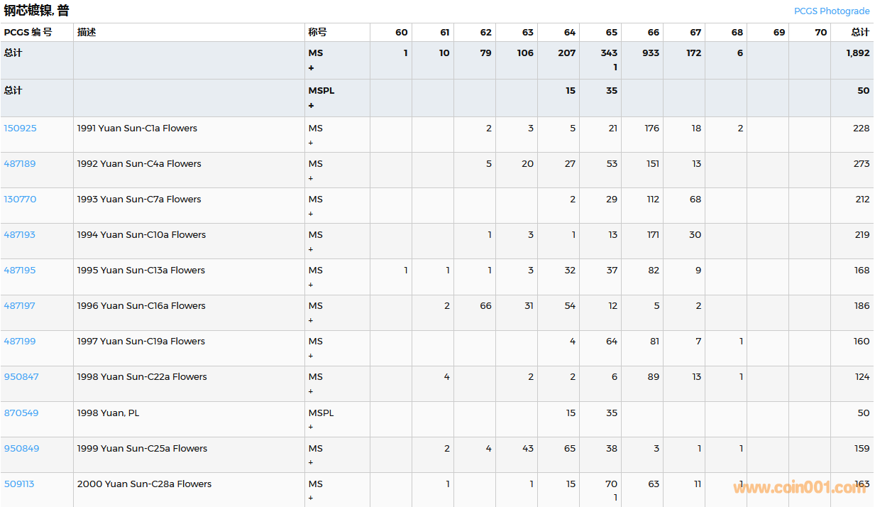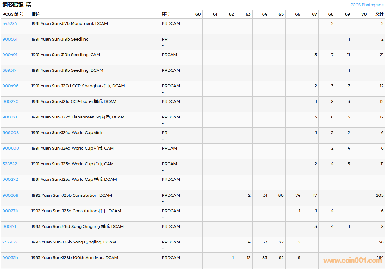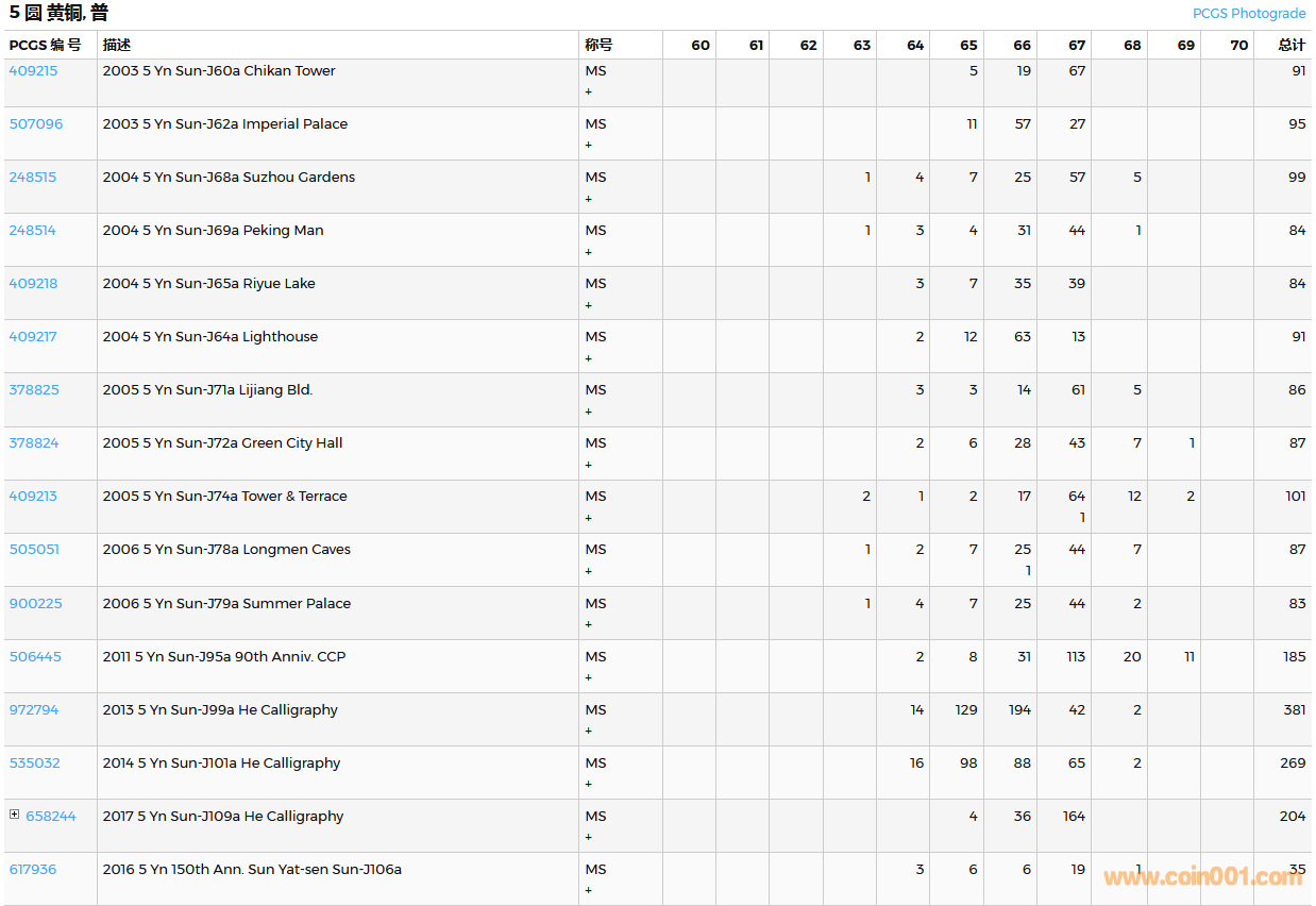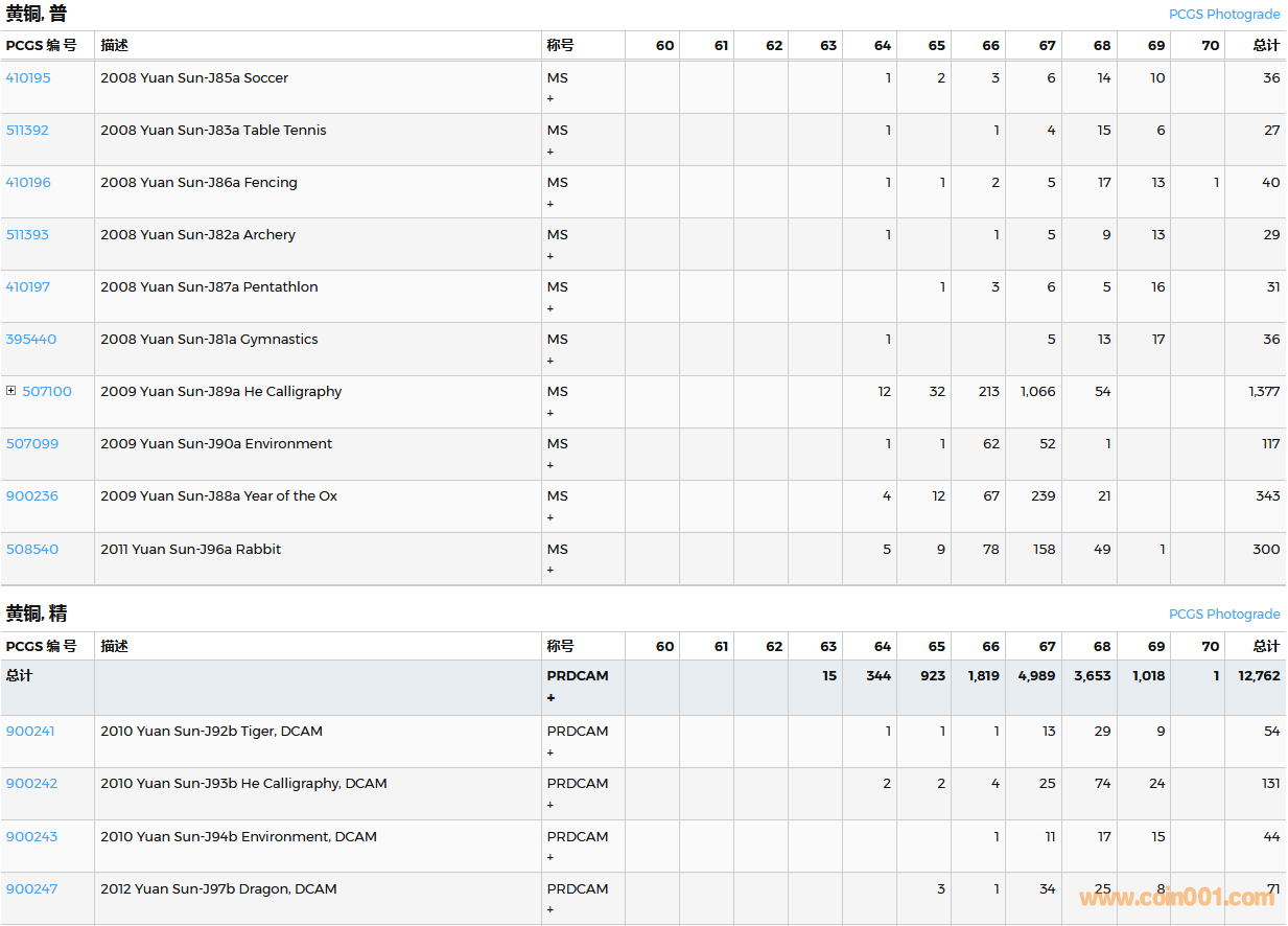 PCGS硬幣評(píng)級(jí)數(shù)量報(bào)告( ..