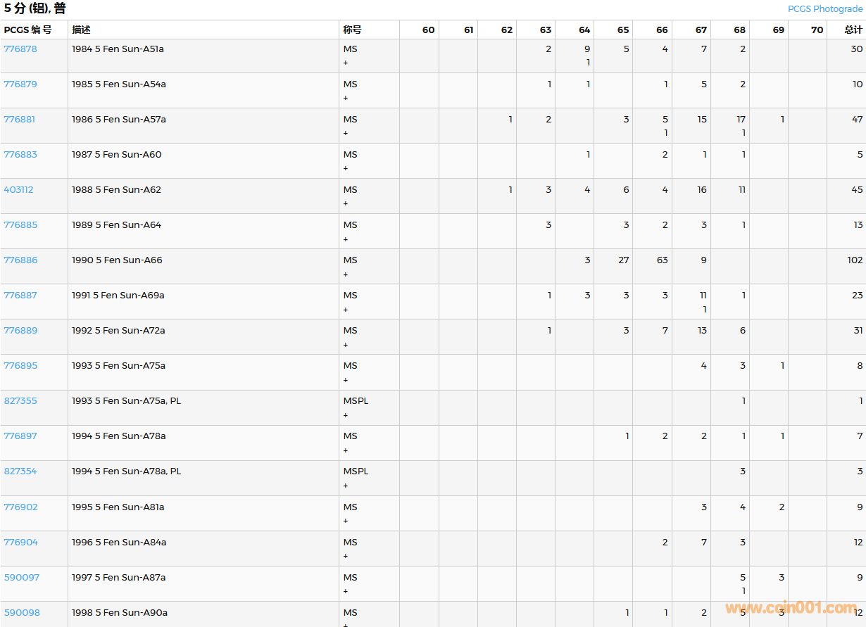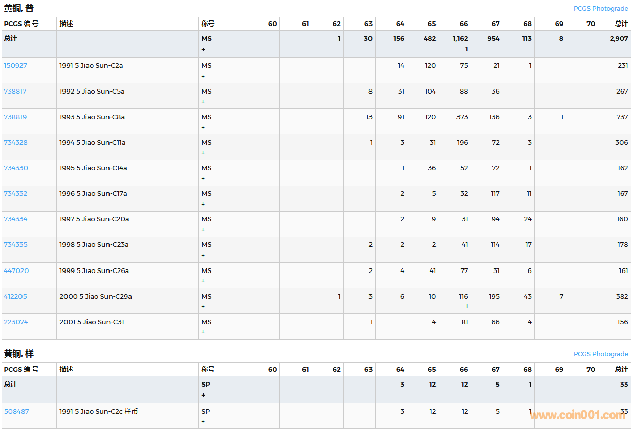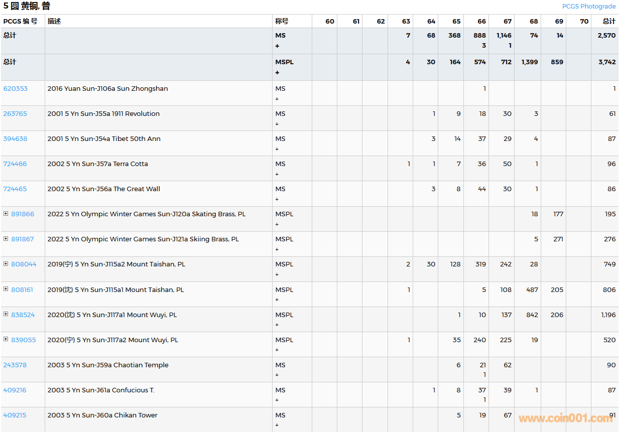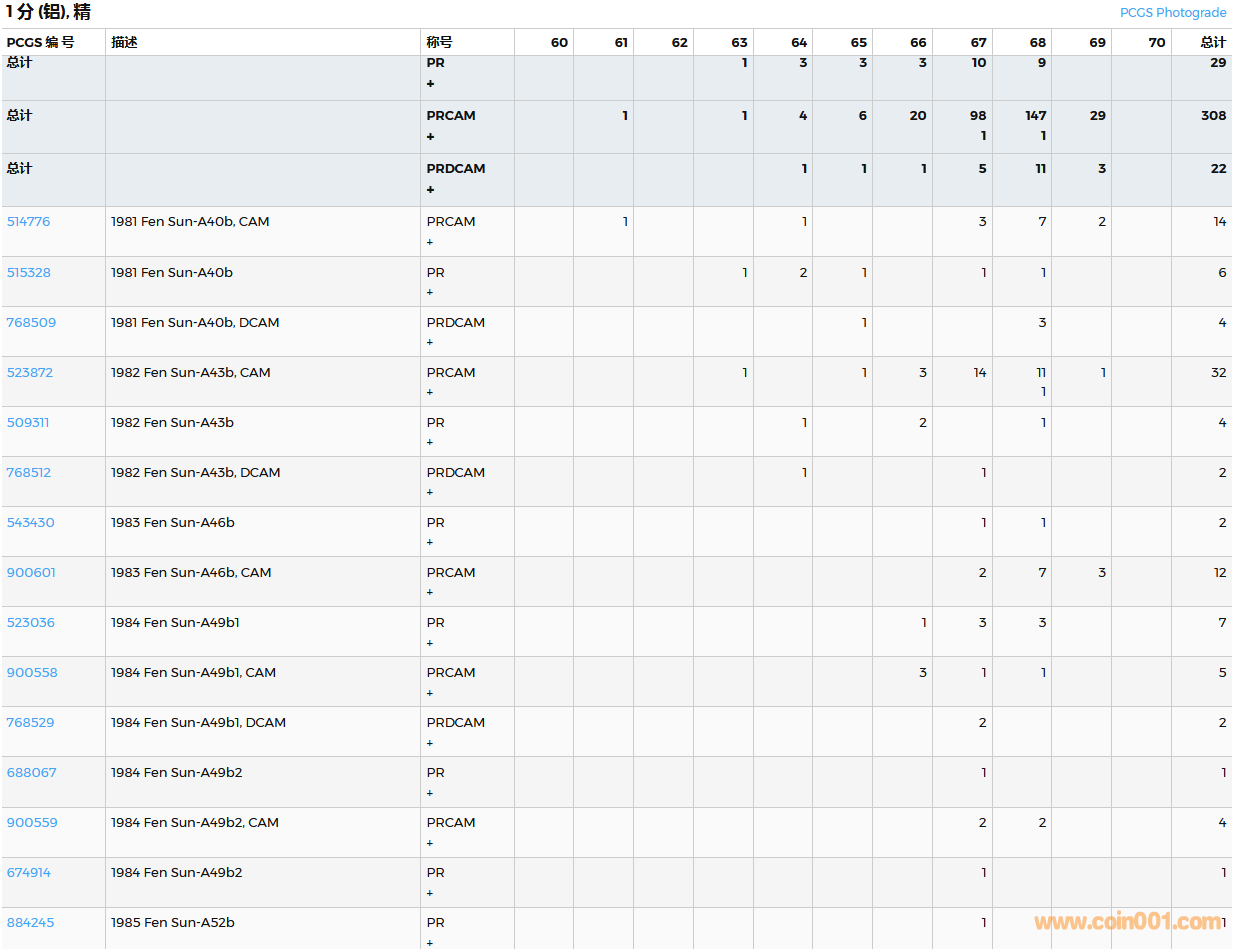 PCGS硬幣評(píng)級(jí)數(shù)量報(bào)告( ..