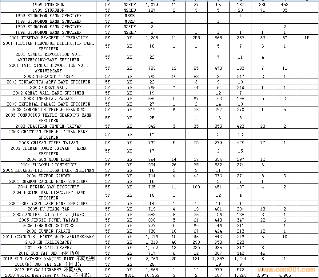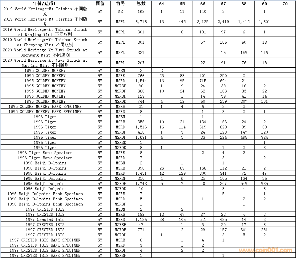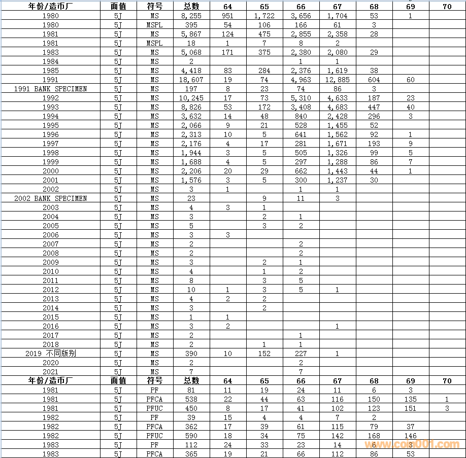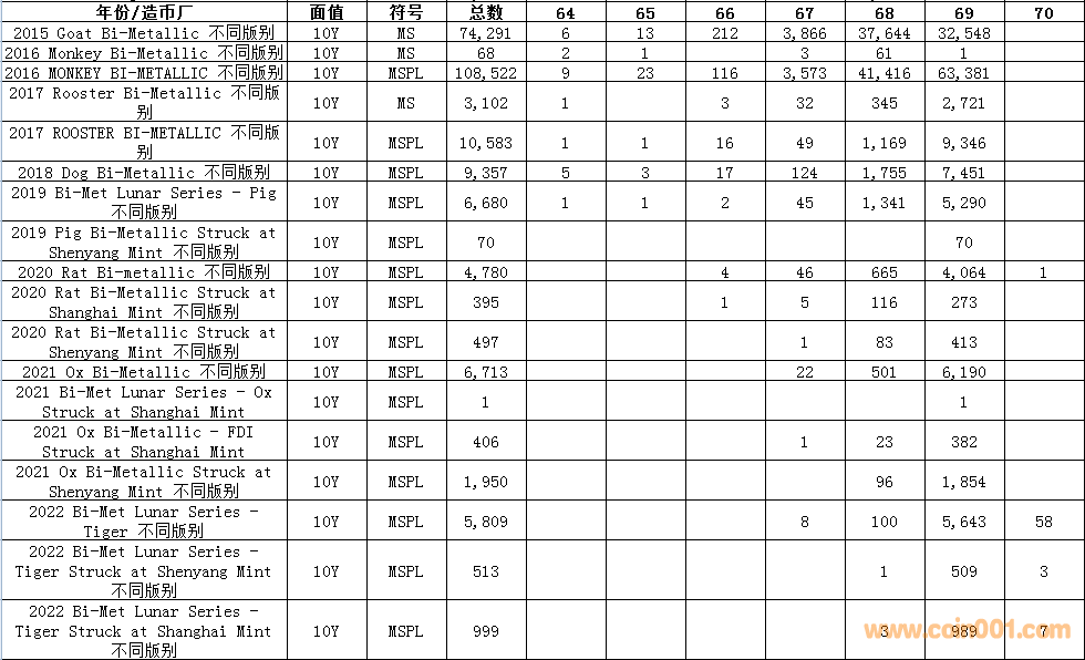NGC硬幣評級數(shù)量報告(2022.3.9)