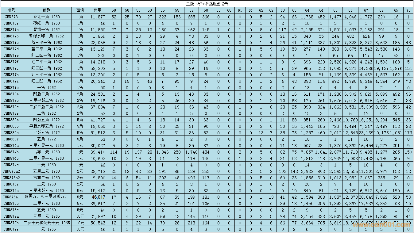 PMG紙幣評(píng)級(jí)數(shù)量報(bào)告