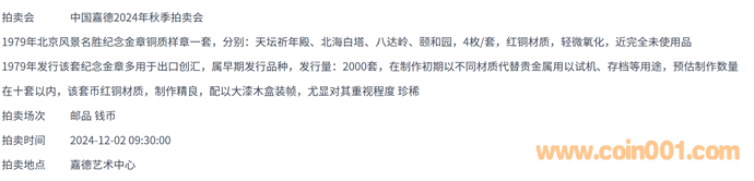 四套章的價(jià)格非常令我滿意,雖然北京風(fēng)景流拍但是瑕不掩瑜。這宣告了早期精品造幣廠銅章從此也登上了線下著名拍賣會(huì)這樣的大雅之堂,可喜可賀,更令我欣喜的是中國(guó)前三的文物藝術(shù)品拍賣公司——嘉德拍賣也注意到了早期精品造幣廠銅章板塊,并且對(duì)此(北京風(fēng)景)做出了學(xué)術(shù)研究。