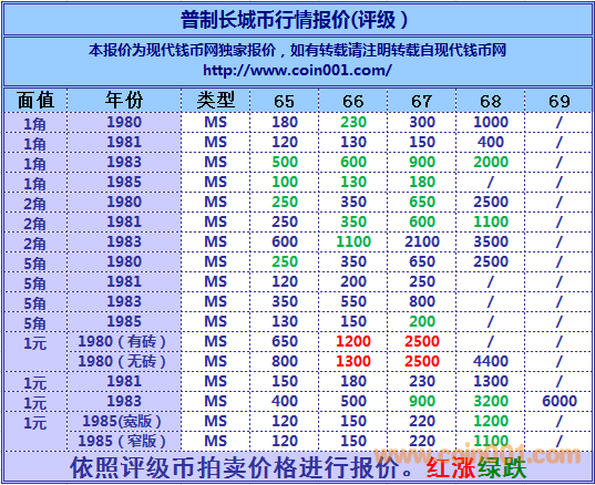 2019,1月普制長城幣報(bào)價(jià)(評(píng)級(jí))