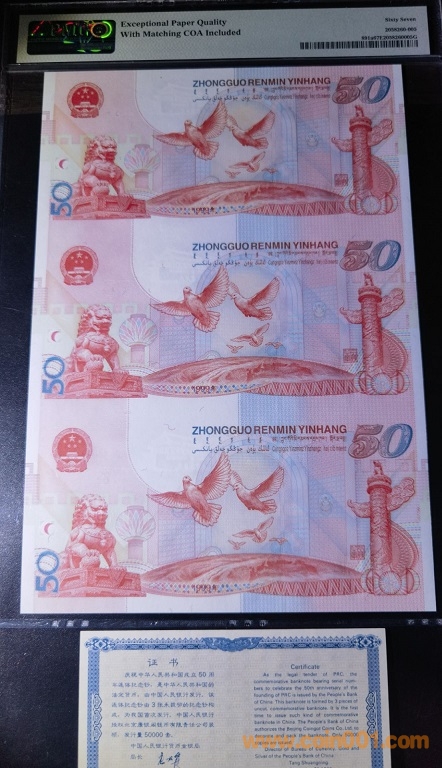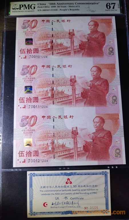 67無3457建國鈔三連體,證書入殼,冊子齊全,31800元。