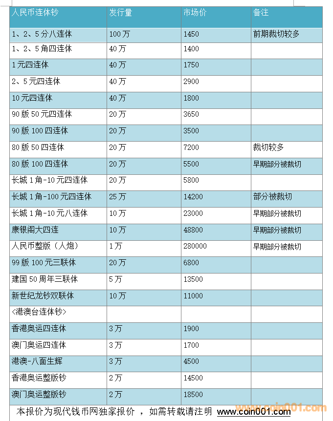 2018年 7月 連體鈔紀(jì)念鈔報(bào)價(jià)