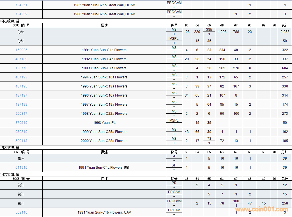 PCGS硬幣評(píng)級(jí)數(shù)量報(bào)告( ..