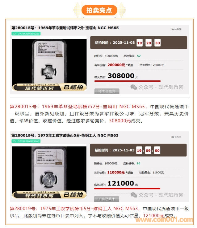 革命圣地-寶塔山試鑄幣30.8萬!2025秋季大拍首日綜述